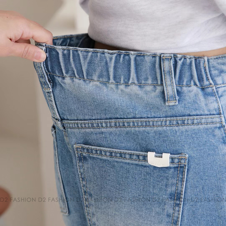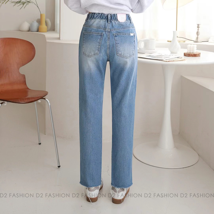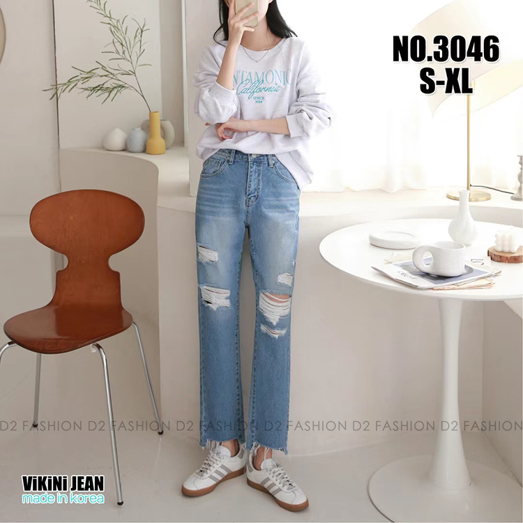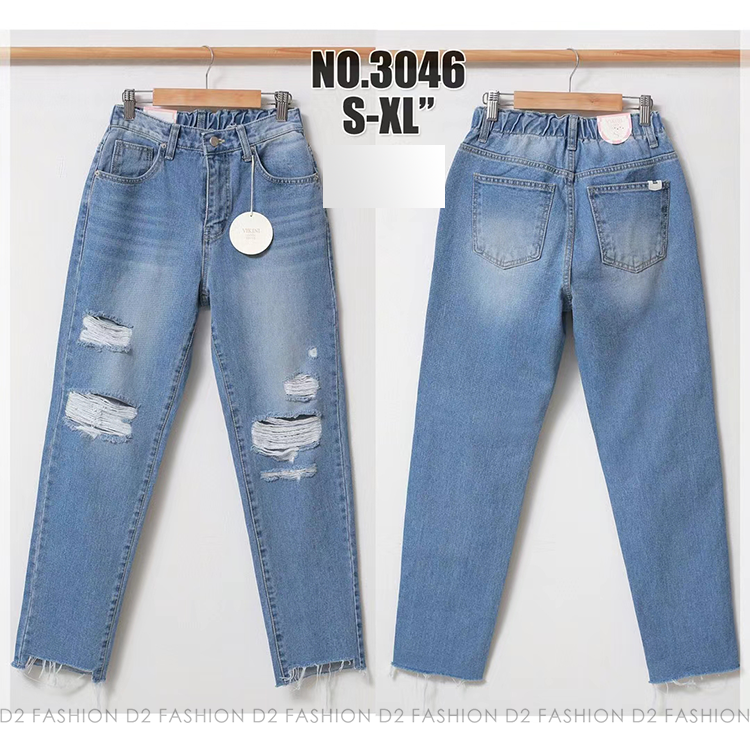 半橡根牛仔爛直腳褲 #3046