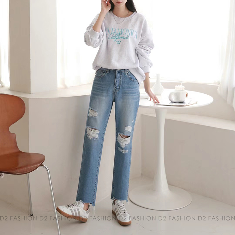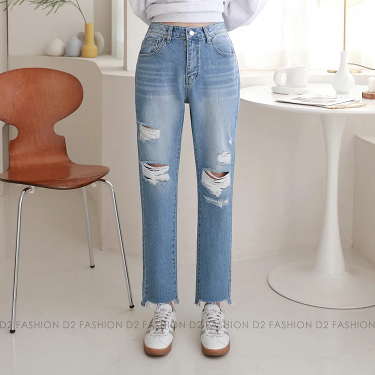 ✨半橡根牛仔爛直腳褲✨