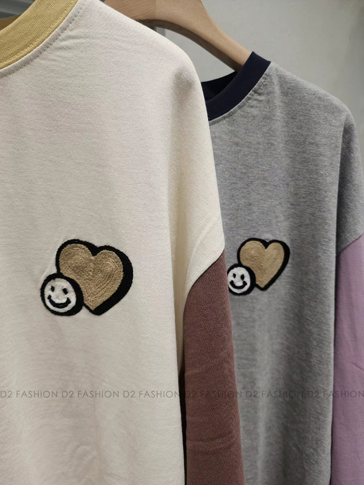 全棉心心哈哈笑拼色Tee #5588