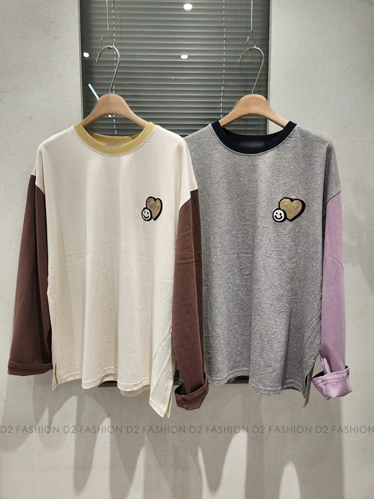 ✨全棉心心哈哈笑拼色Tee✨