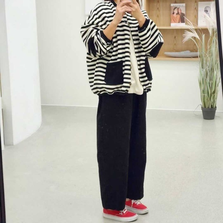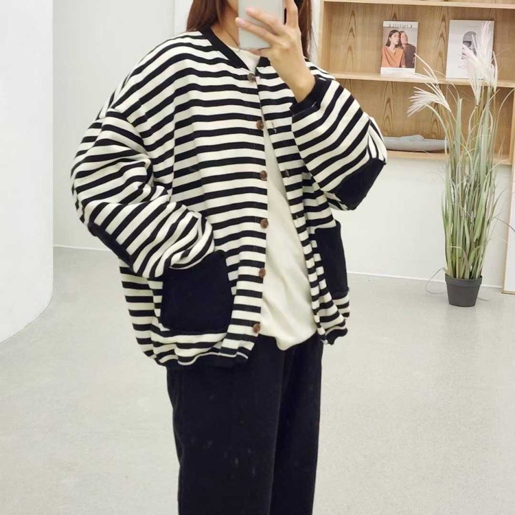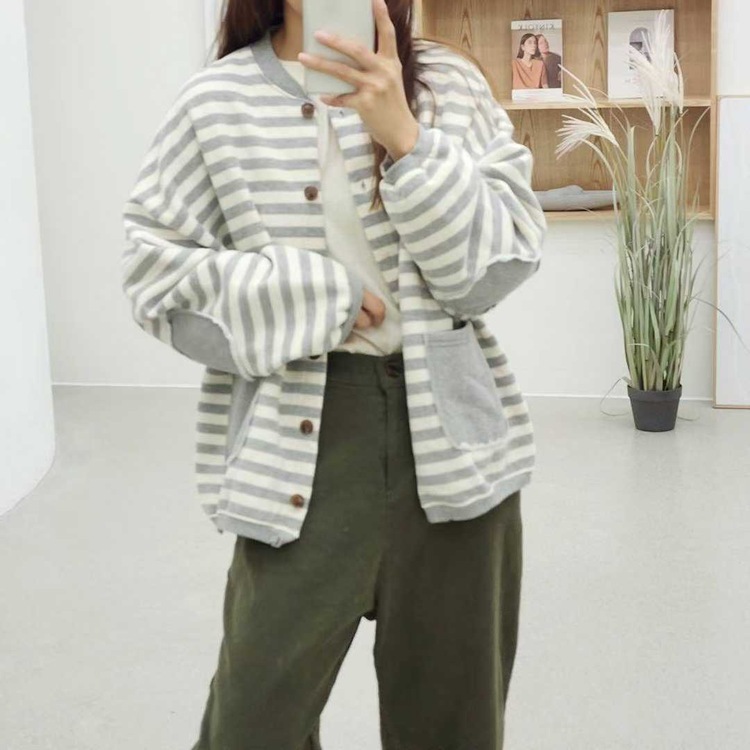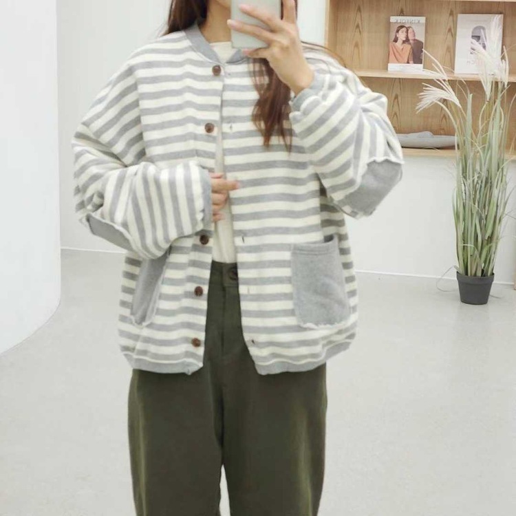 ✨綿質橫間拼袋外套✨