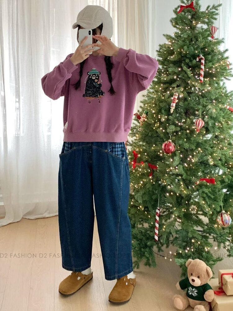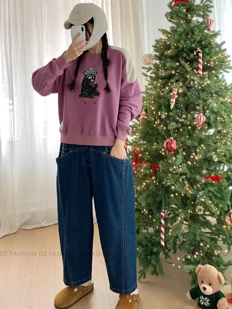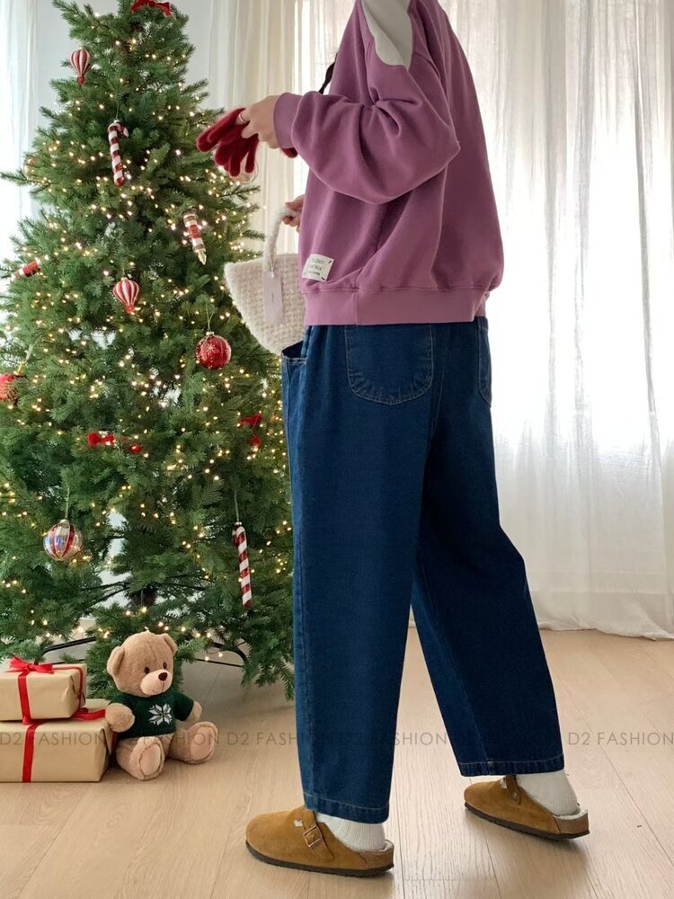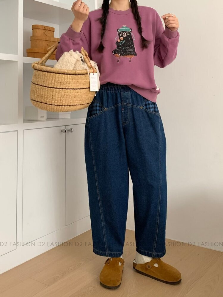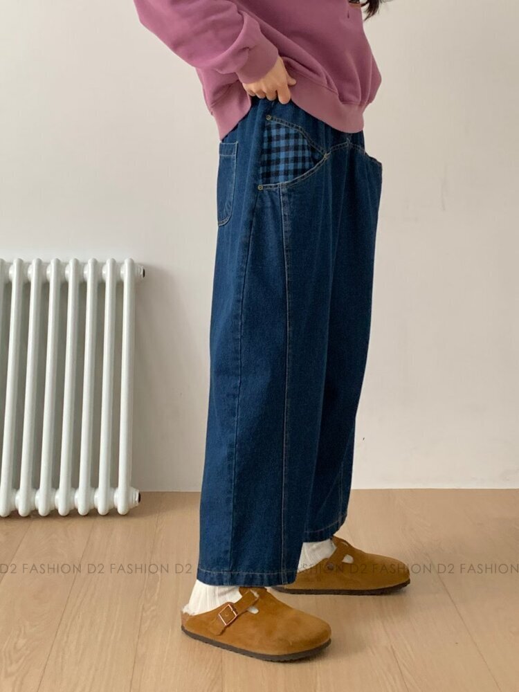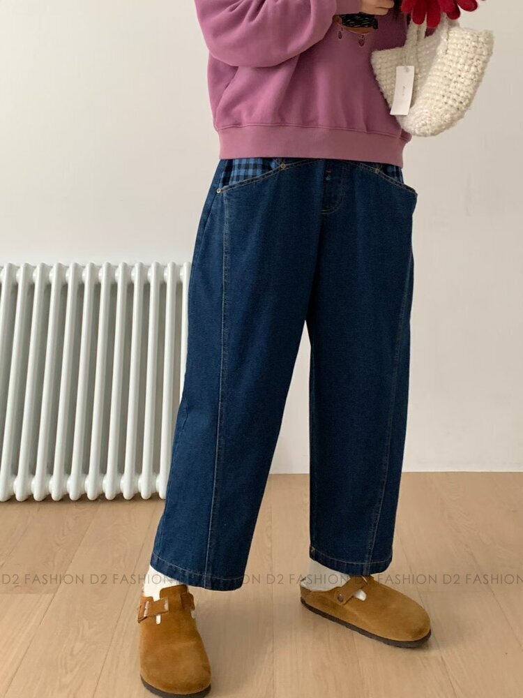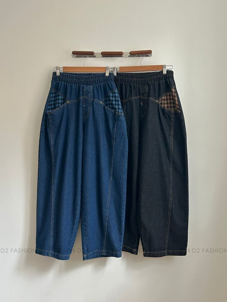 ✨拼藍色格仔牛仔褲✨
