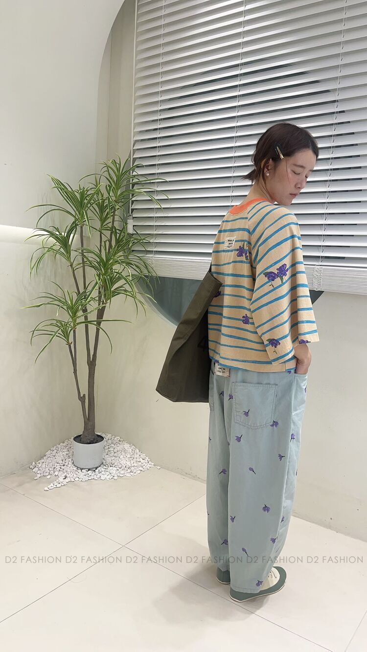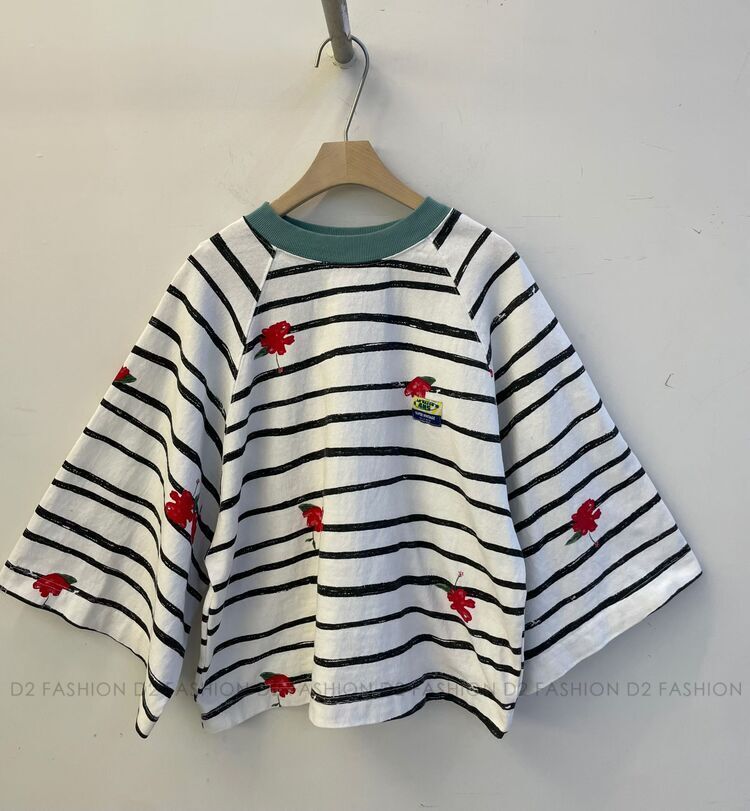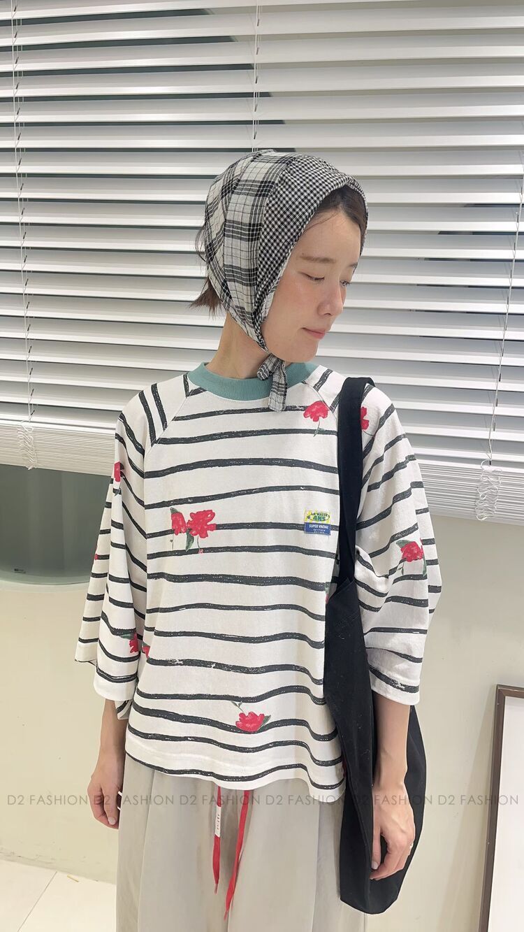 ✨手繪間條花Tee✨