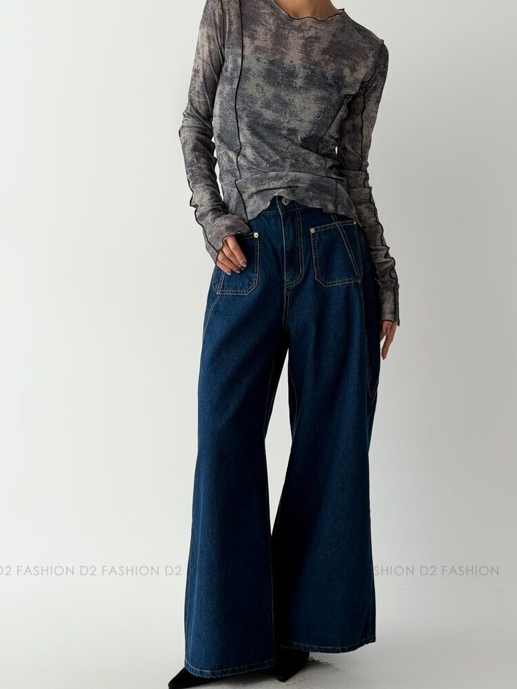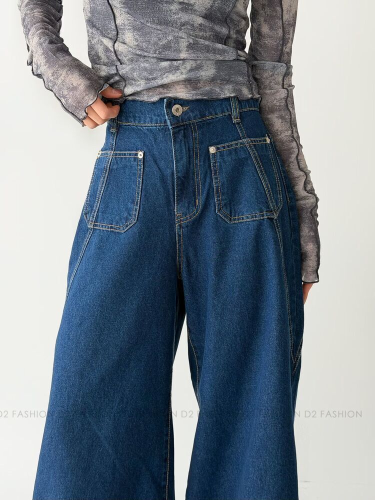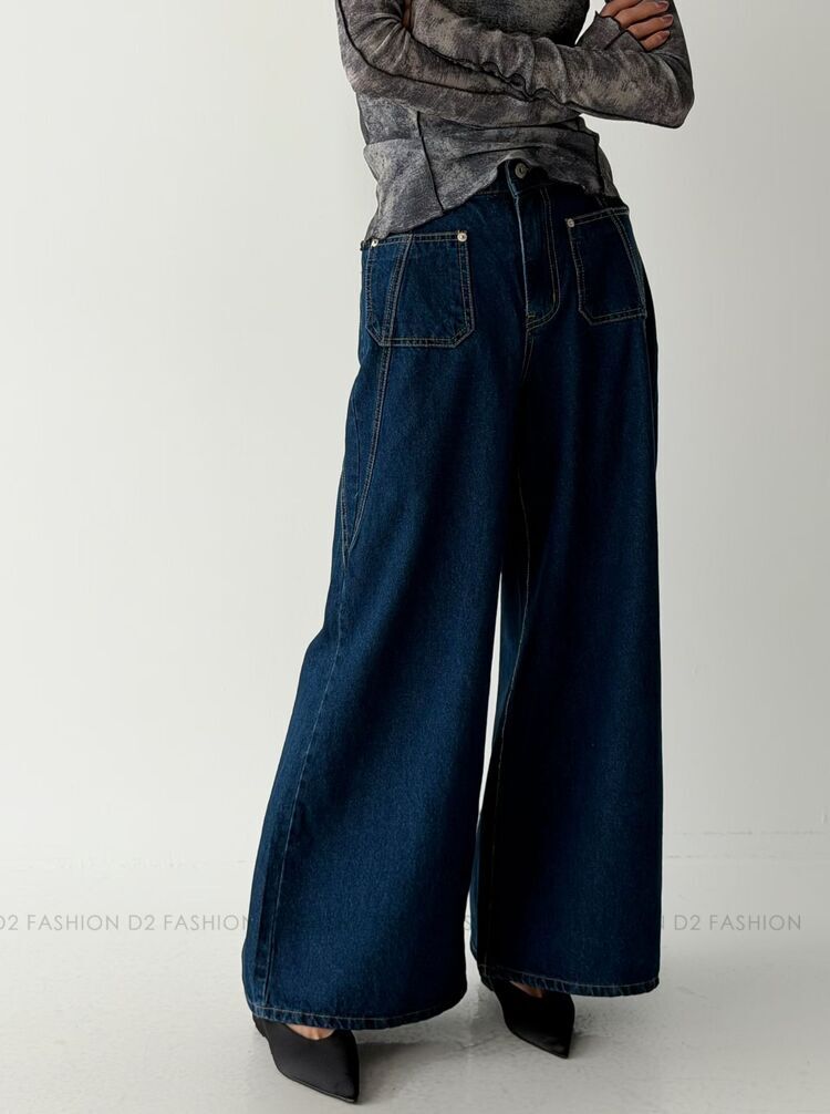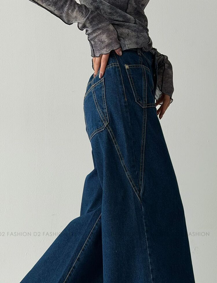 ✨斜骨Pocket洗水薄料牛仔褲✨