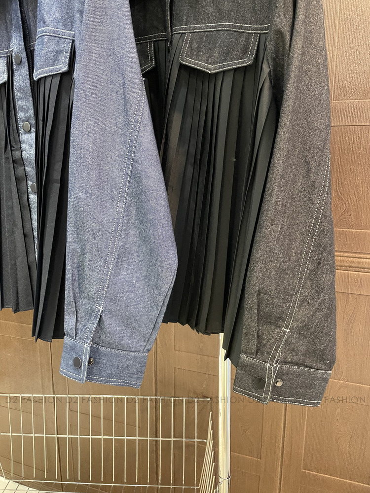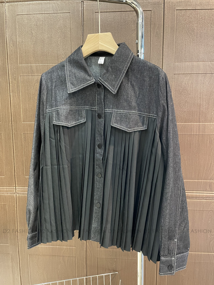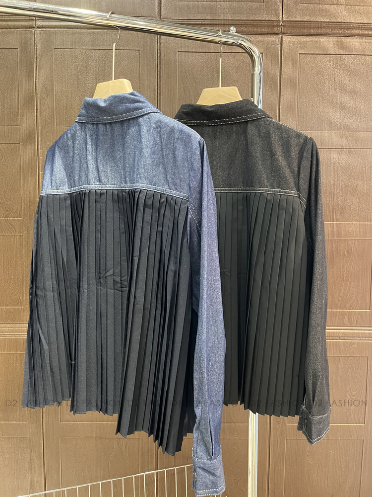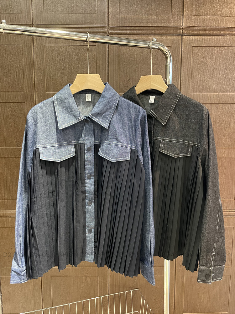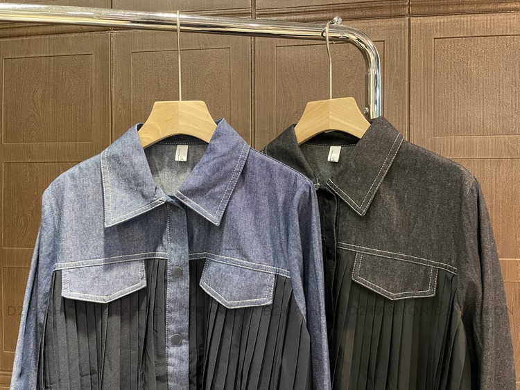 牛仔拼百摺恤衫 #68730