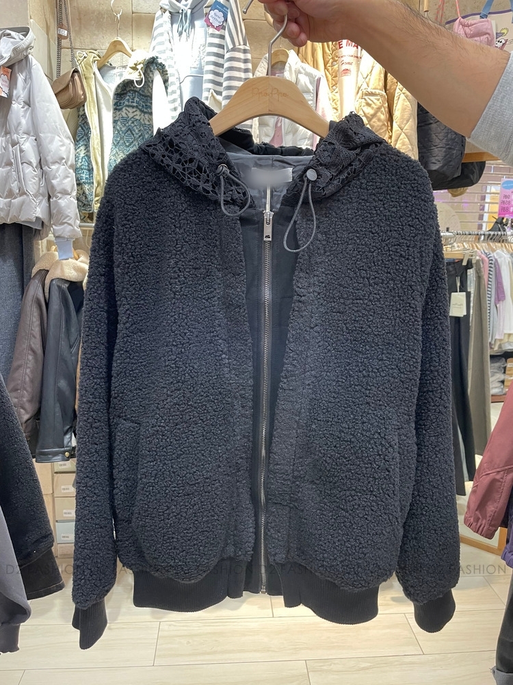✨毛毛拼衛衣料Lace帽外套✨