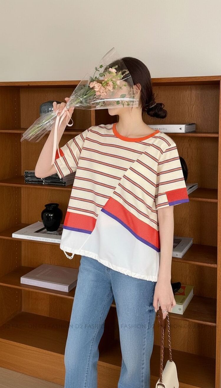 ✨橫間拼摺網布Tee✨