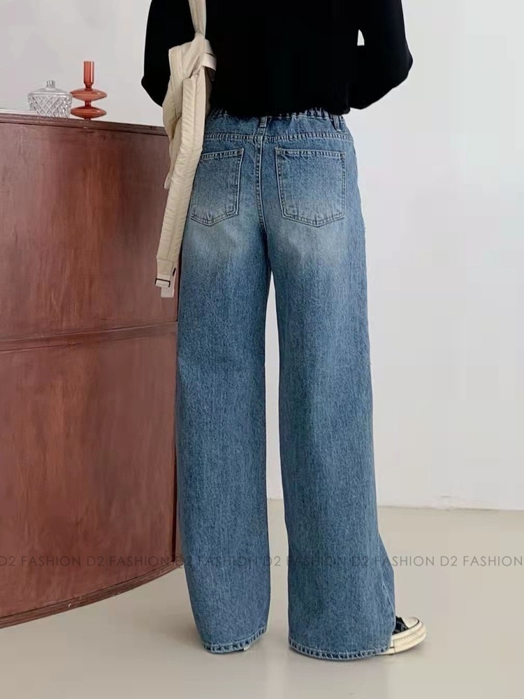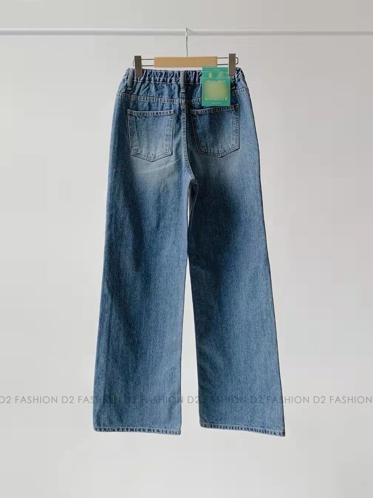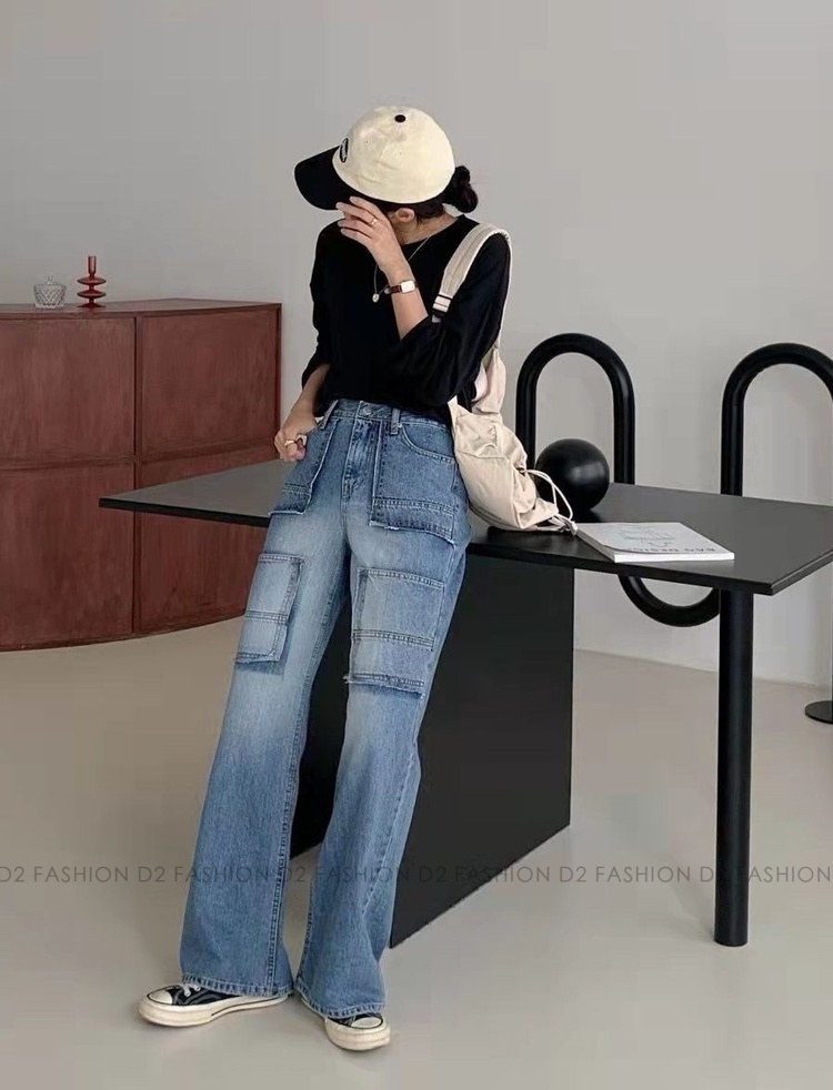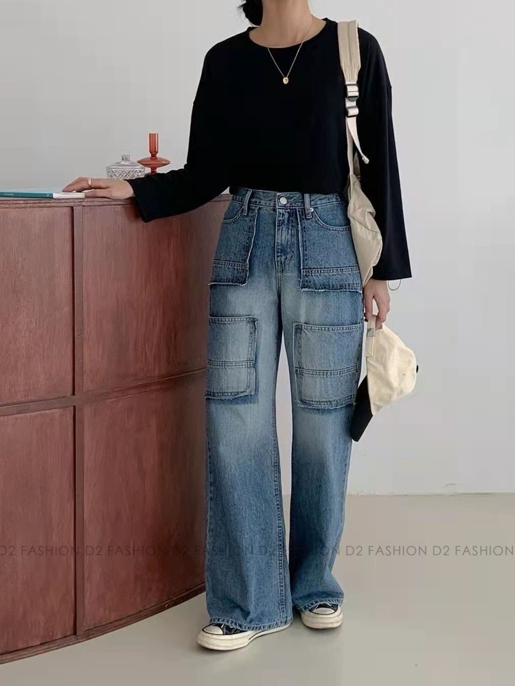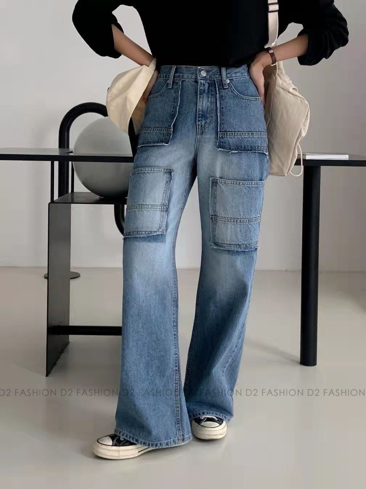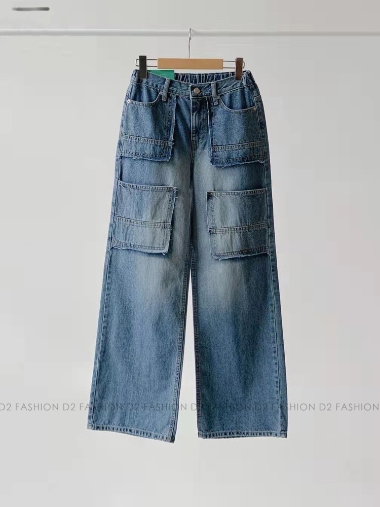 洗水拼布直腳牛仔褲 #7746