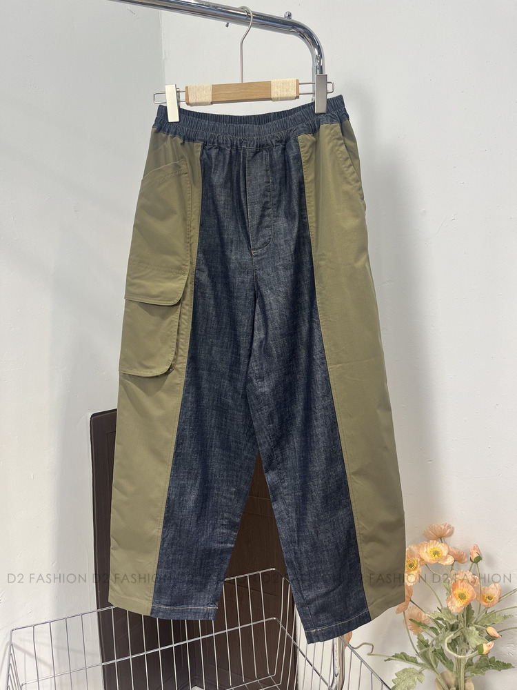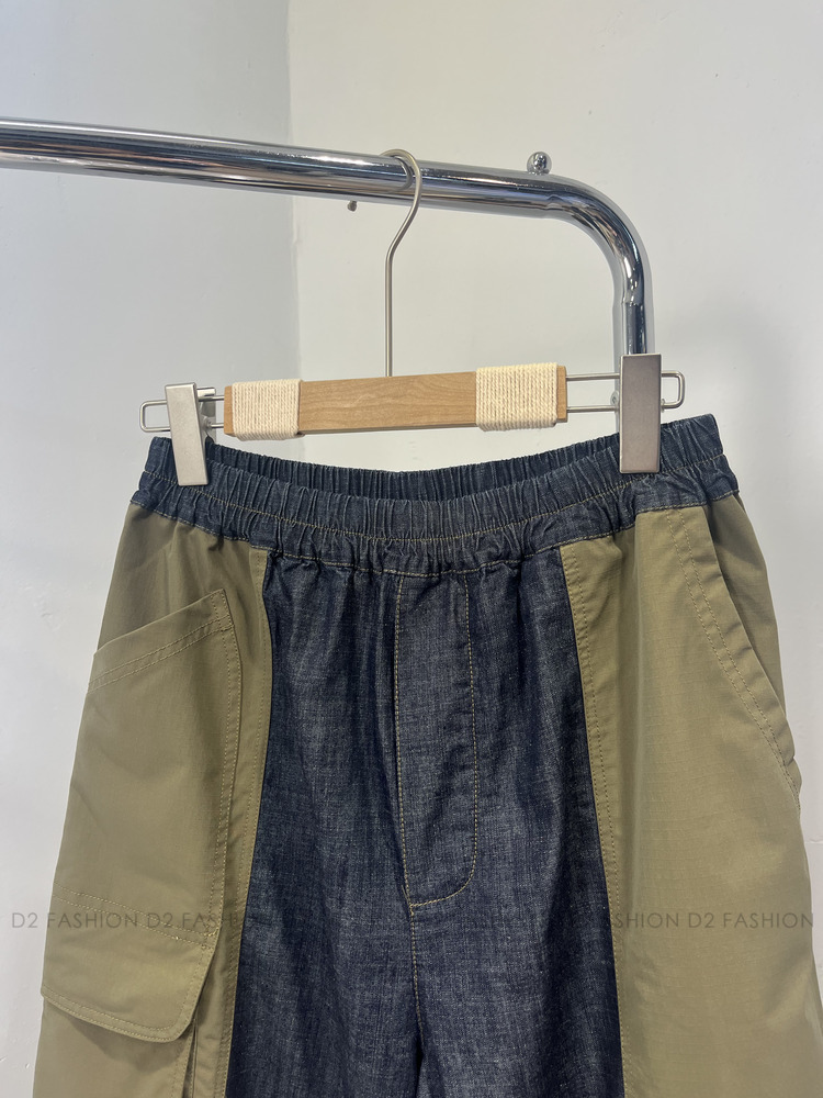 ✨原色牛仔拼扯布褲✨