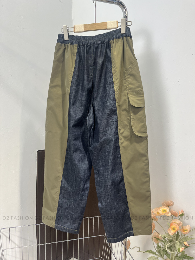 原色牛仔拼扯布褲 #918