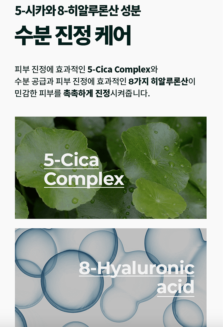 弱酸性, 含有益生菌, 5種CICA成分及8種透明質酸成分