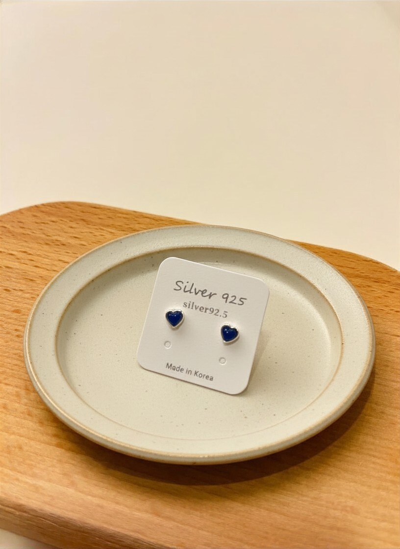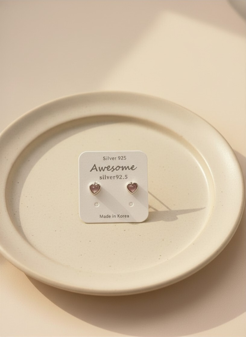 天然小石心心純銀耳環 #E352