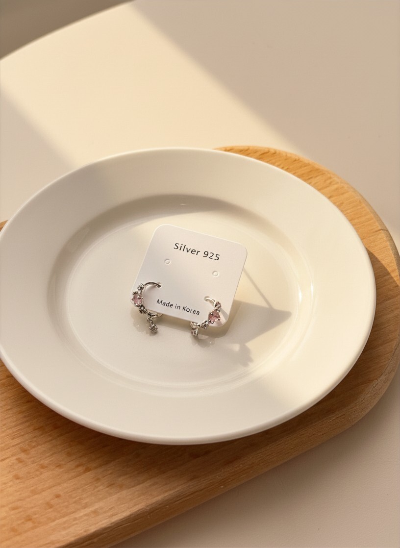 拼天然石墜閃石圈耳環 #E355