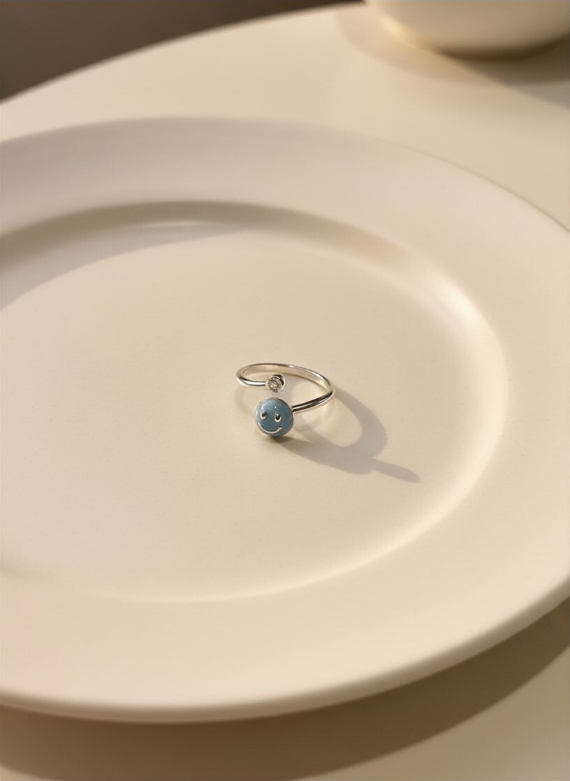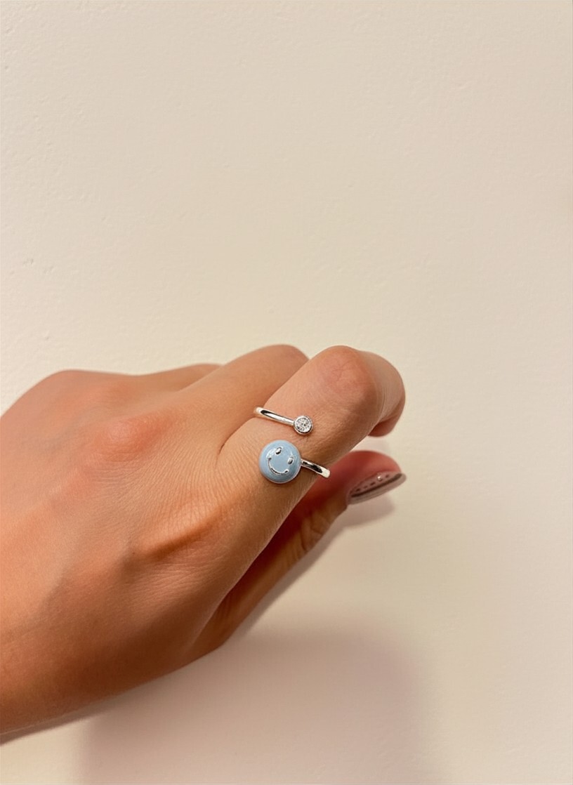 藍色哈哈笑拼閃石開口戒指 #F44