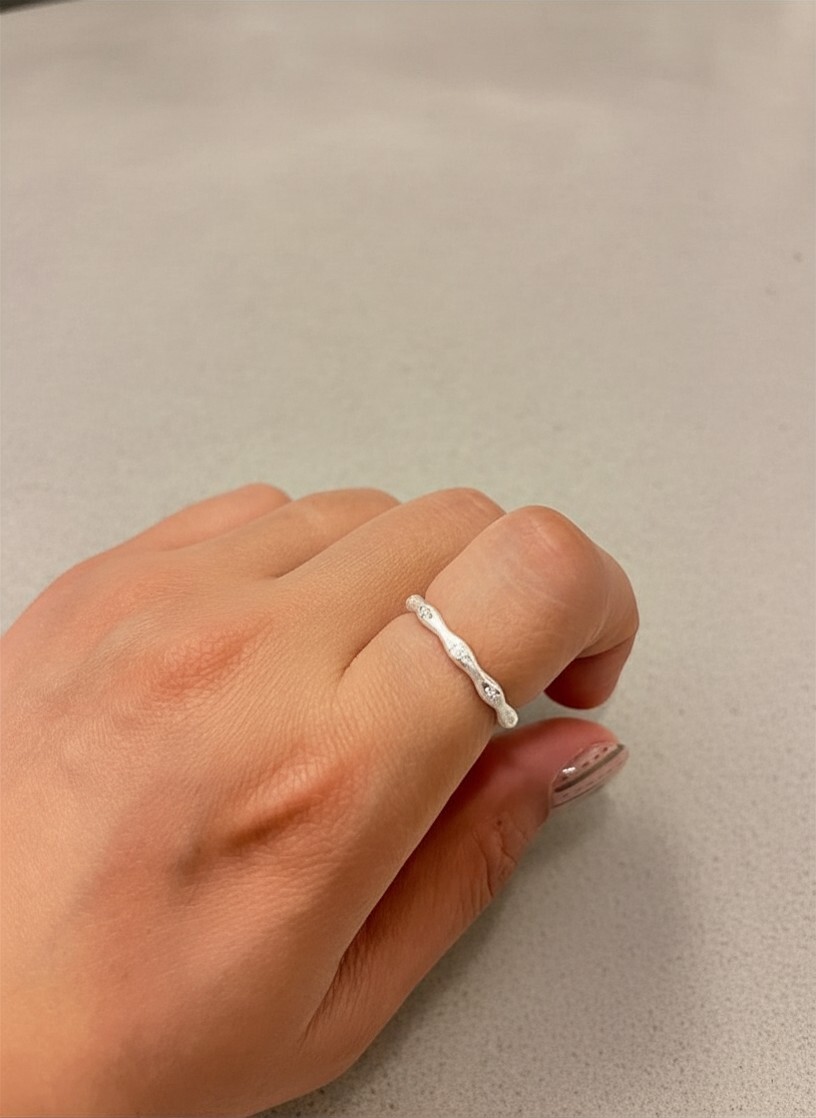 磨砂波浪小閃石開口純銀戒指 #F49