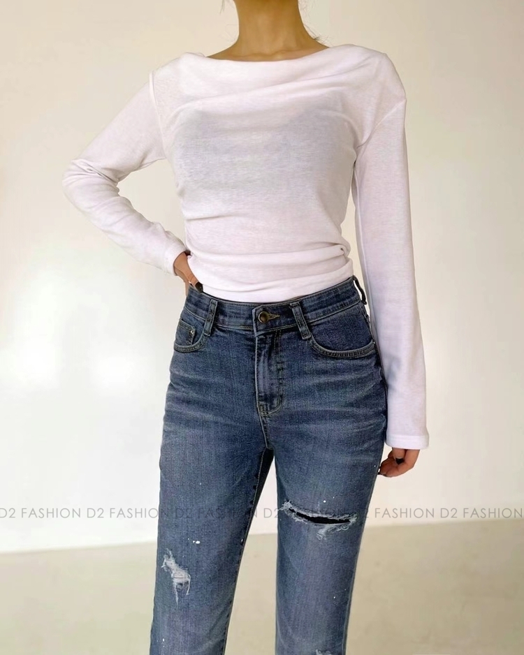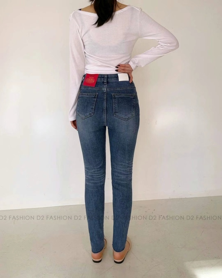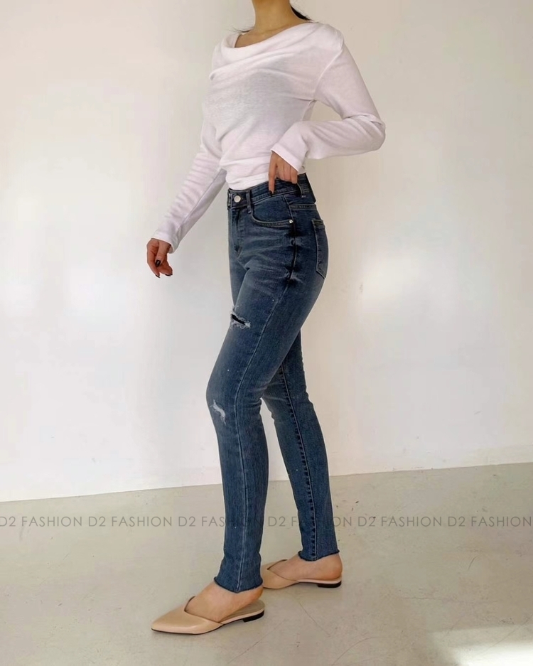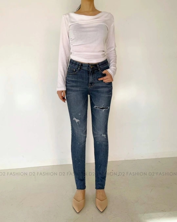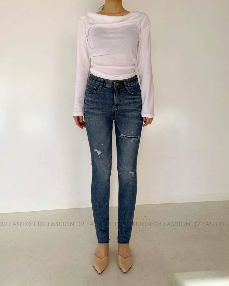 潑墨小破洞貼腳牛仔褲 #H5437