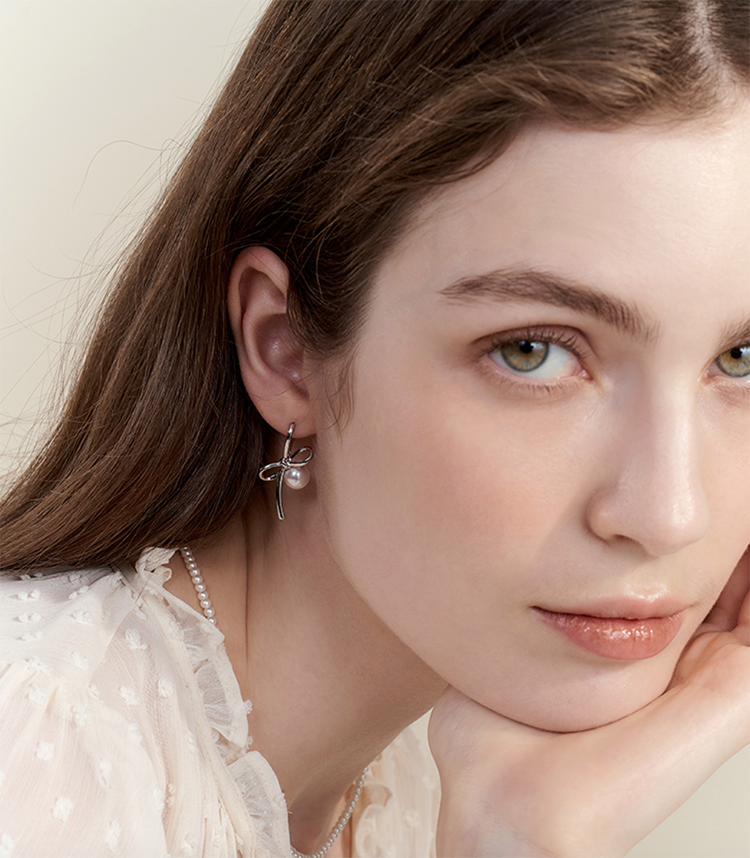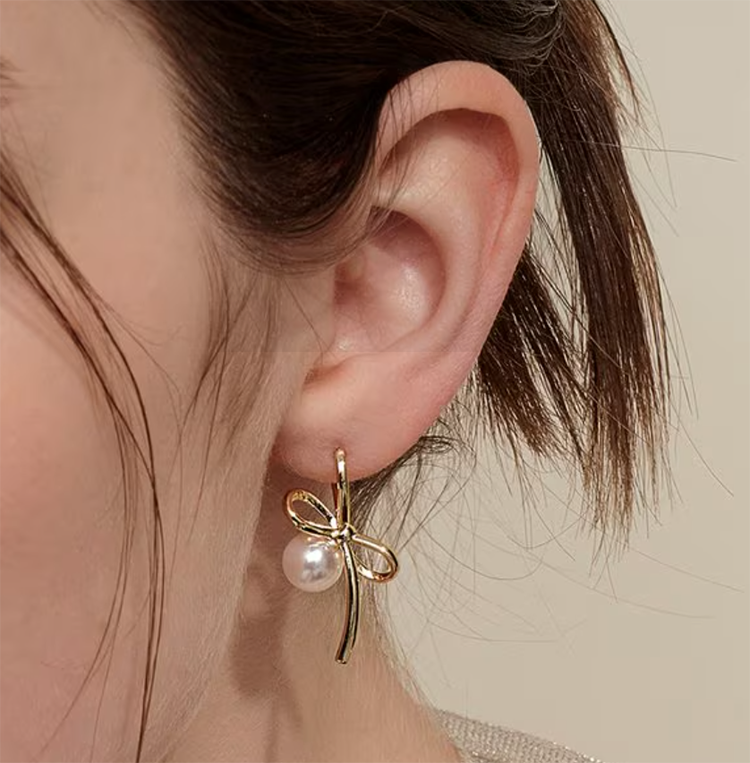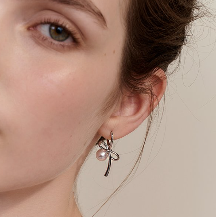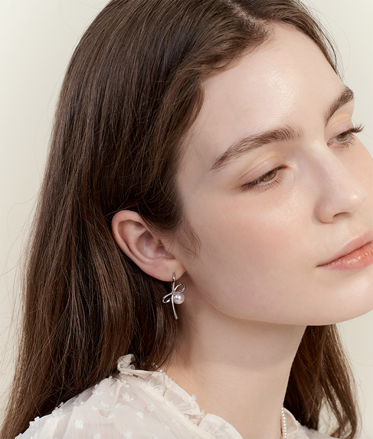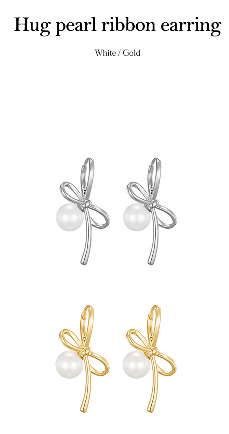 Hug Pearl Ribbon Earring