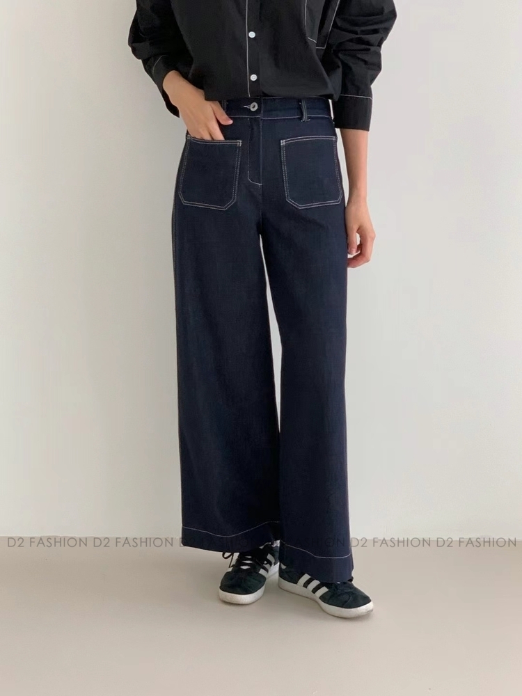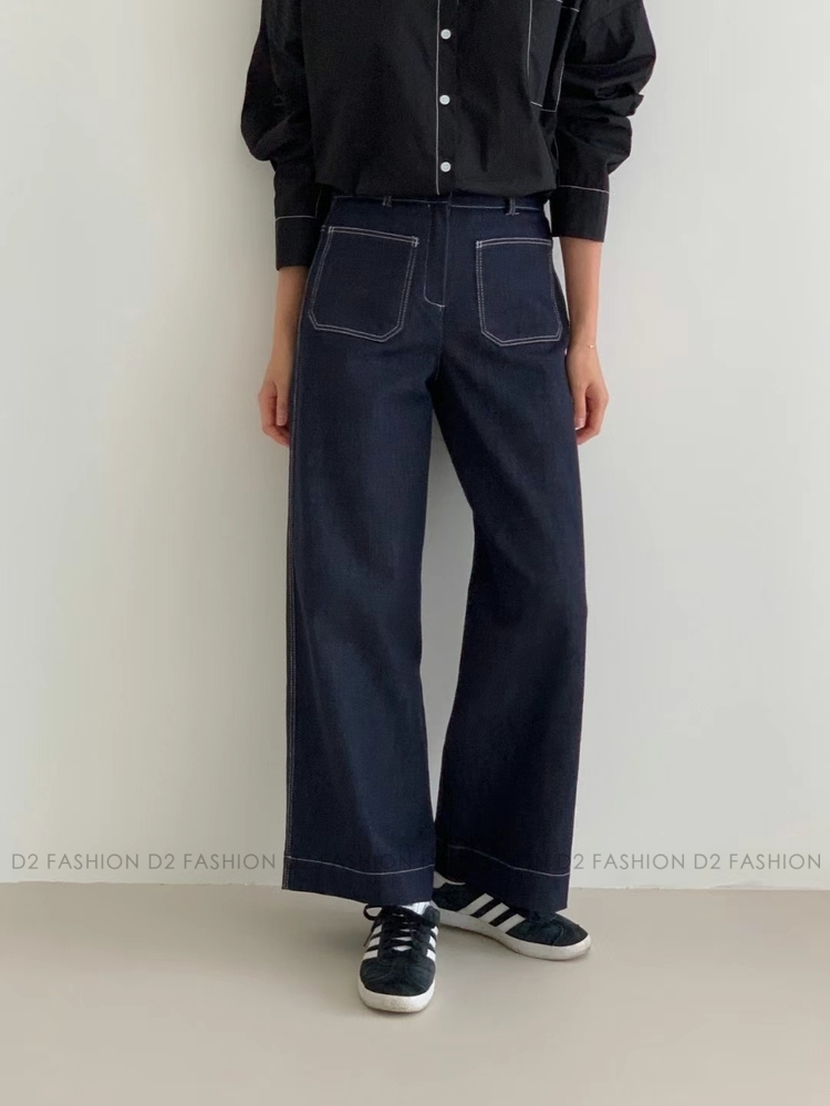 (皇牌款) 原色拼雙袋牛仔直腳褲 #MC20