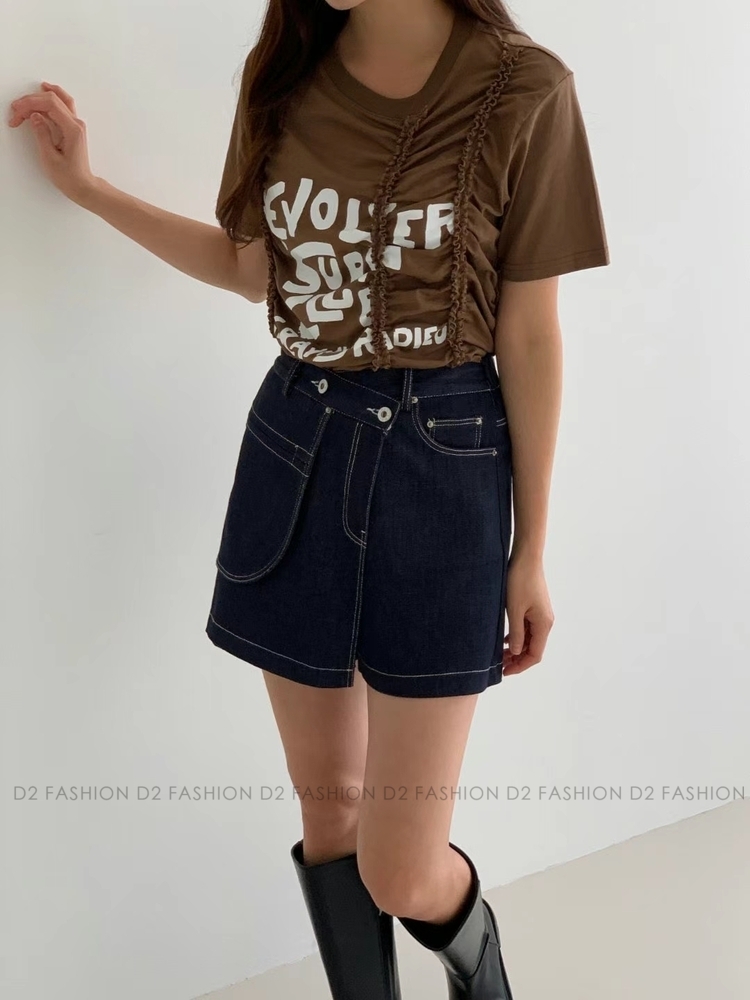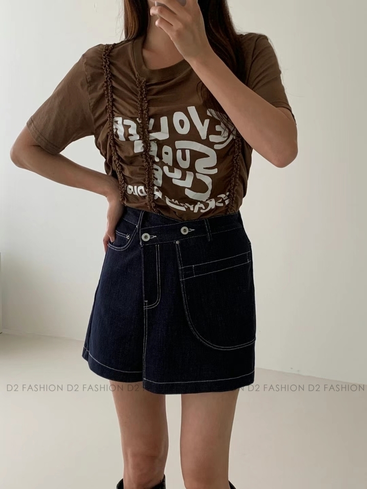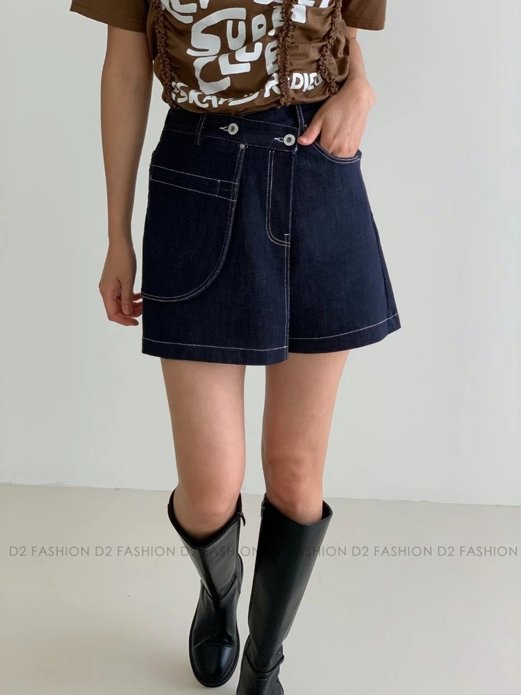 ✨原色拼摺牛仔短裙褲✨