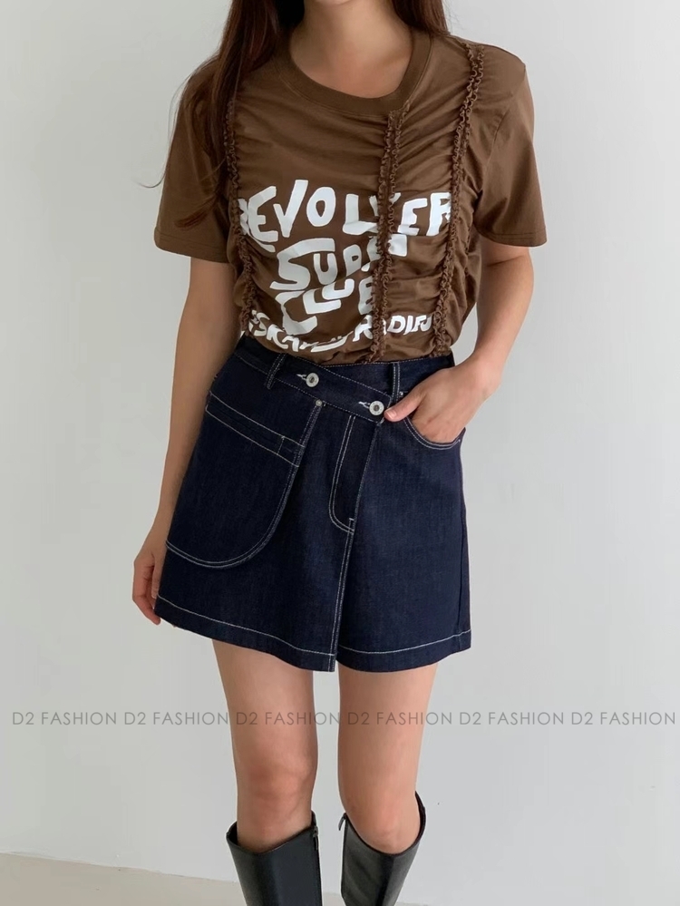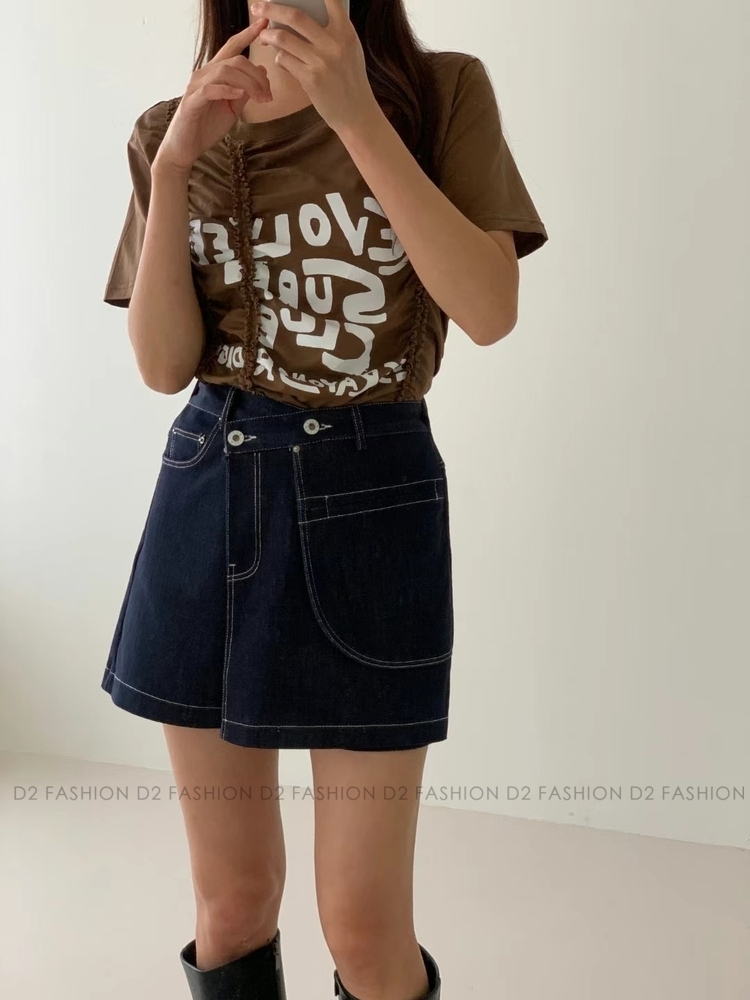 原色拼摺牛仔短裙褲 #MC22