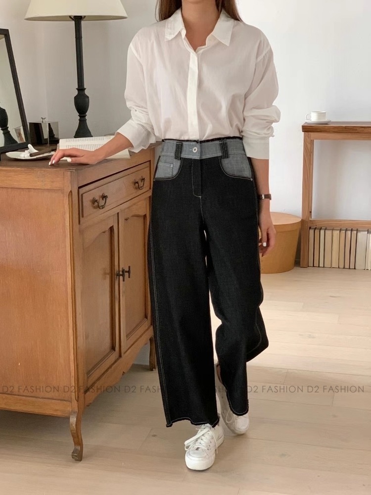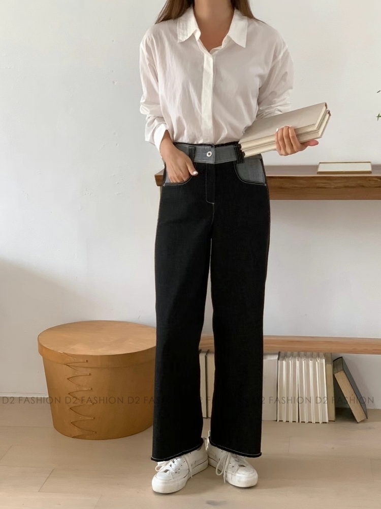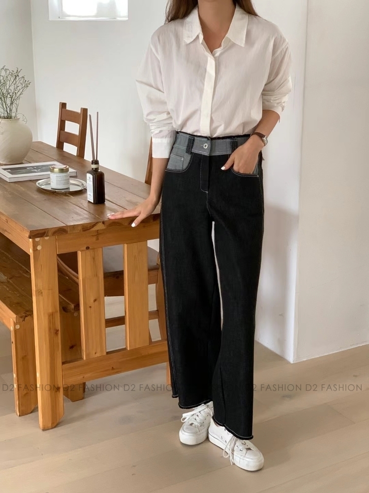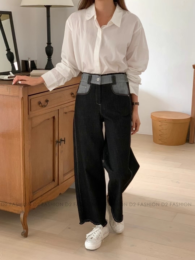 ✨(皇牌款) 拼色半橡根原色牛仔褲✨