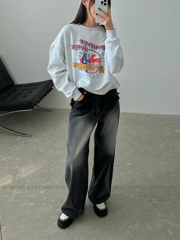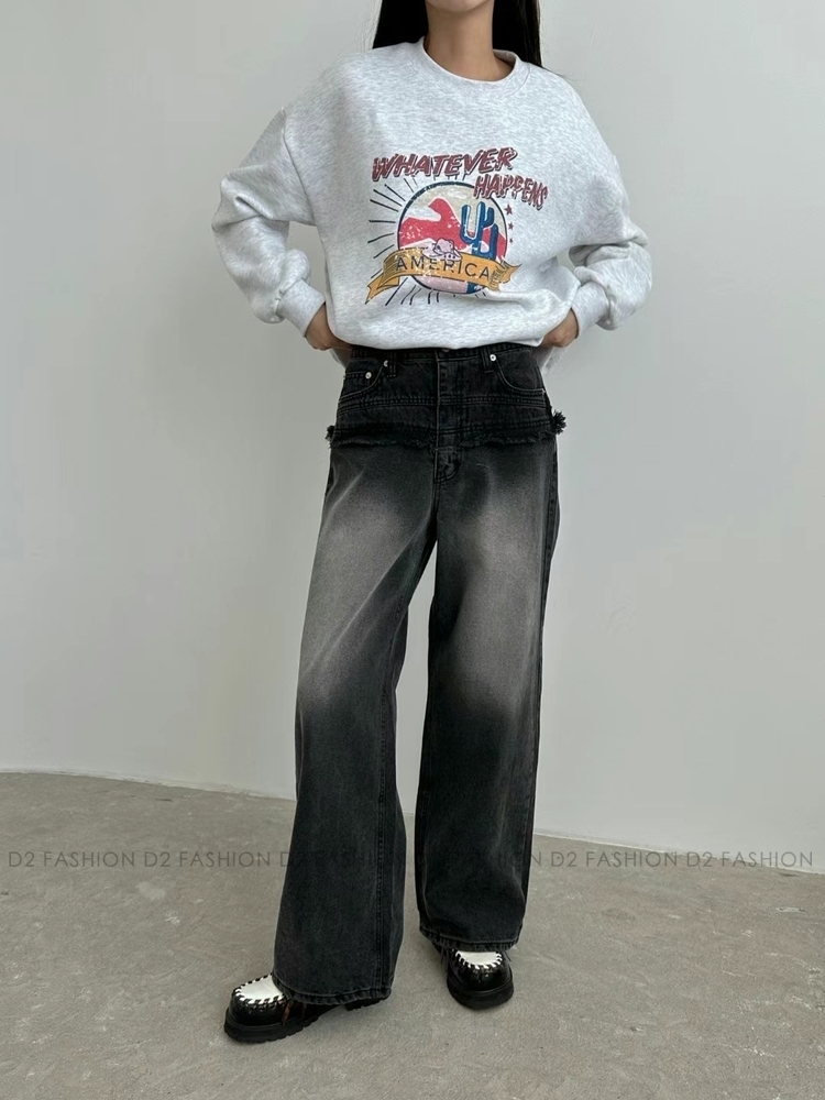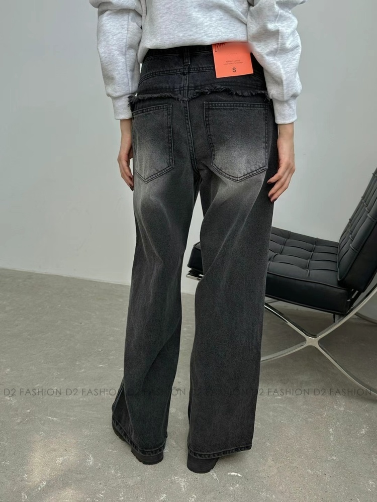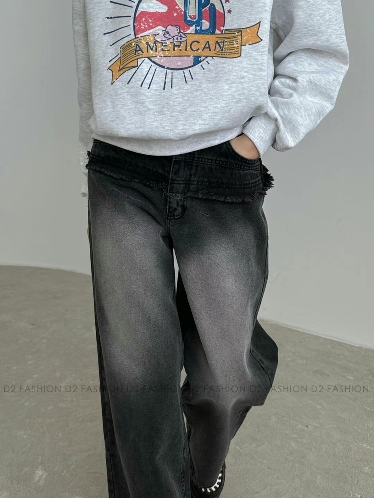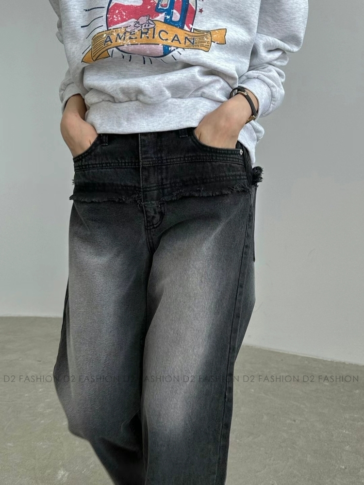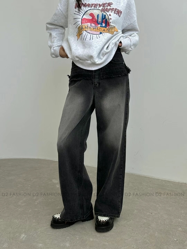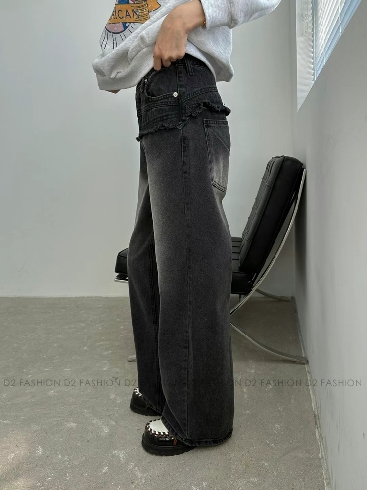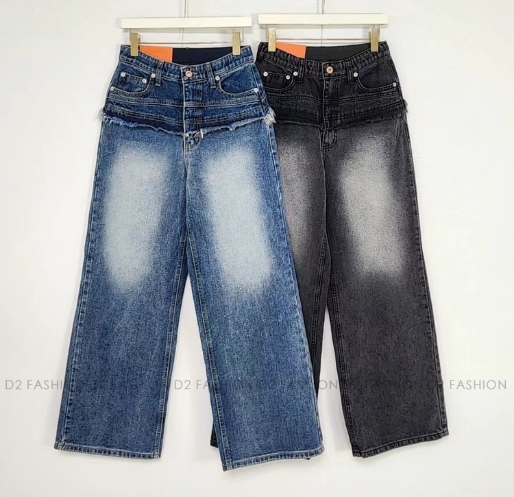 (推薦款)洗水牛仔拼摺闊褲 #MC29